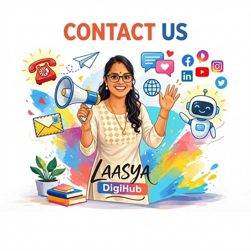 Let’s connect! Whether you need help with SEO, social media marketing, branding, or website growth, Laasya DigiHub is here to help your business grow online.